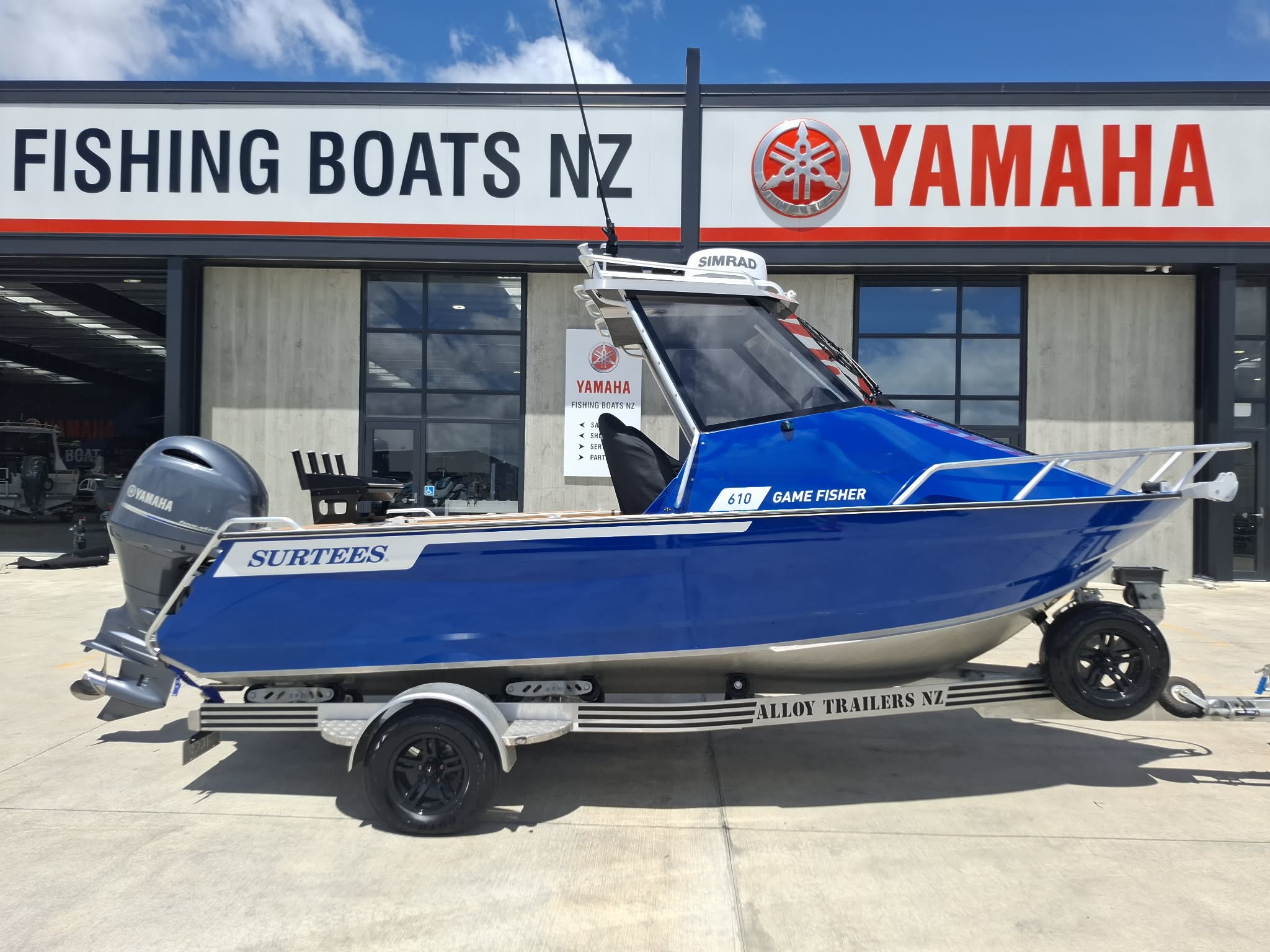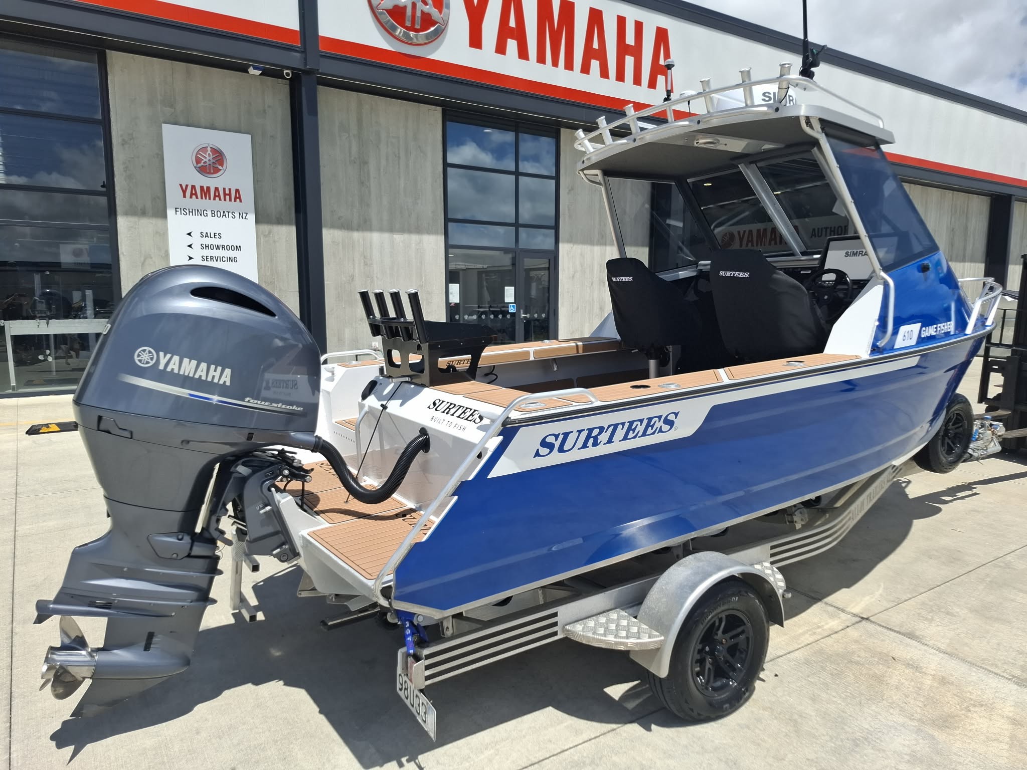 Surtees Game Fisher just arrived, very tidy for its age. 3 month warranty plus all factory warrantees will be transferred. Fully checked over by our workshop, serviced, new wof and rego. High Spec Fishing and Diving weapon. Very stable and soft riding solid 6.1m Hard Top.